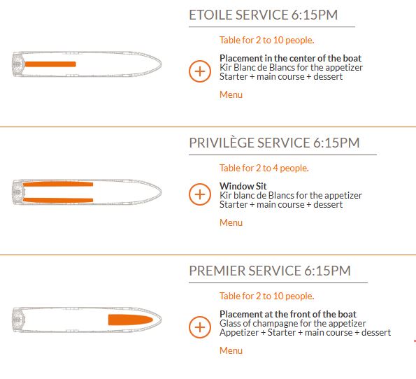Enjoy the delectable French cuisine that has been skillfully prepared by the best chefs and is accompanied by music to make the most of the gastronomic experience. The à la carte menu includes a starter, main course, dessert, wines, mineral water, and coffee, prepared fresh on board.